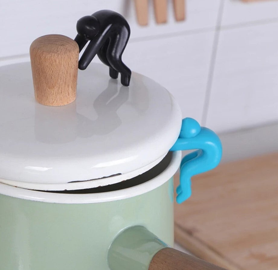 Dekselhouder anti overkook hulpstuk - Siliconen mannetje - Overkoken voorkomen - Panbeschermer poppetje - Zwart