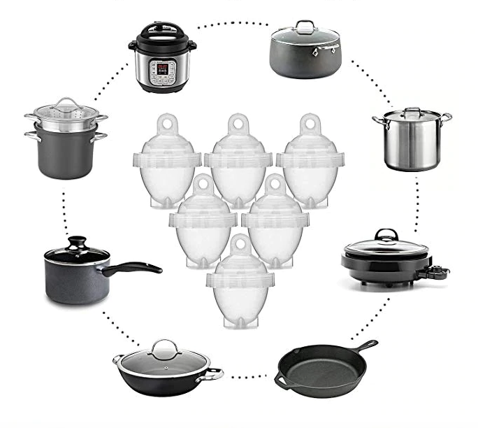 Professionele set van 6 Egglettes - BPA vrij - Eieren kopen zonder schil / schaal - Makkelijk eieren koken - Eier koker - Eierkoker set - Transparant