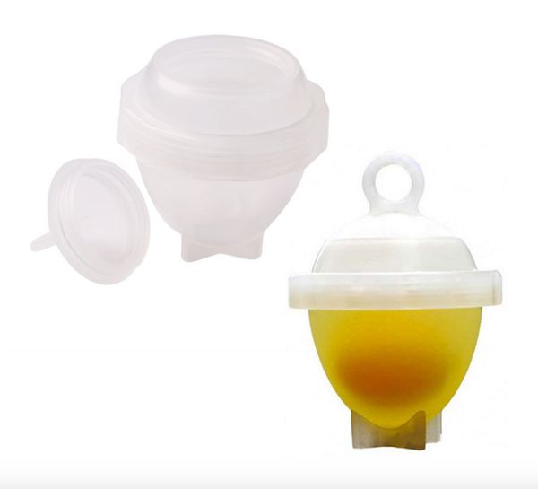 De Egglettes zijn gemaakt van BPA-vrij kunststof. Gebruik een kleine pan die precies 6 stuks kan bevatten en vul deze met genoeg water zodat de Egglettes erin kunnen drijven.