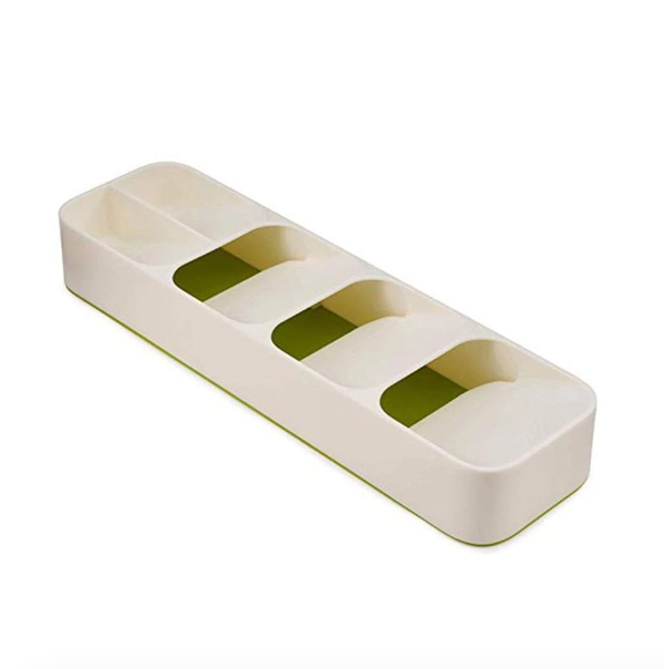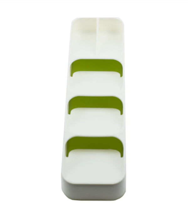Deze handige bestekbak van kunststof heeft 5 vakken en zorgt ervoor dat u uw bestek overzichtelijk op kunt bergen. De cassette is luxe afgewerkt en is erg sterk, kras- en vochtbestendig, waardoor het vaak gebruik wordt voor in de keuken of badkamer. Hoogte: 5.8 cm, breedte: 11.4 cm en lengte: 39.8 cm.