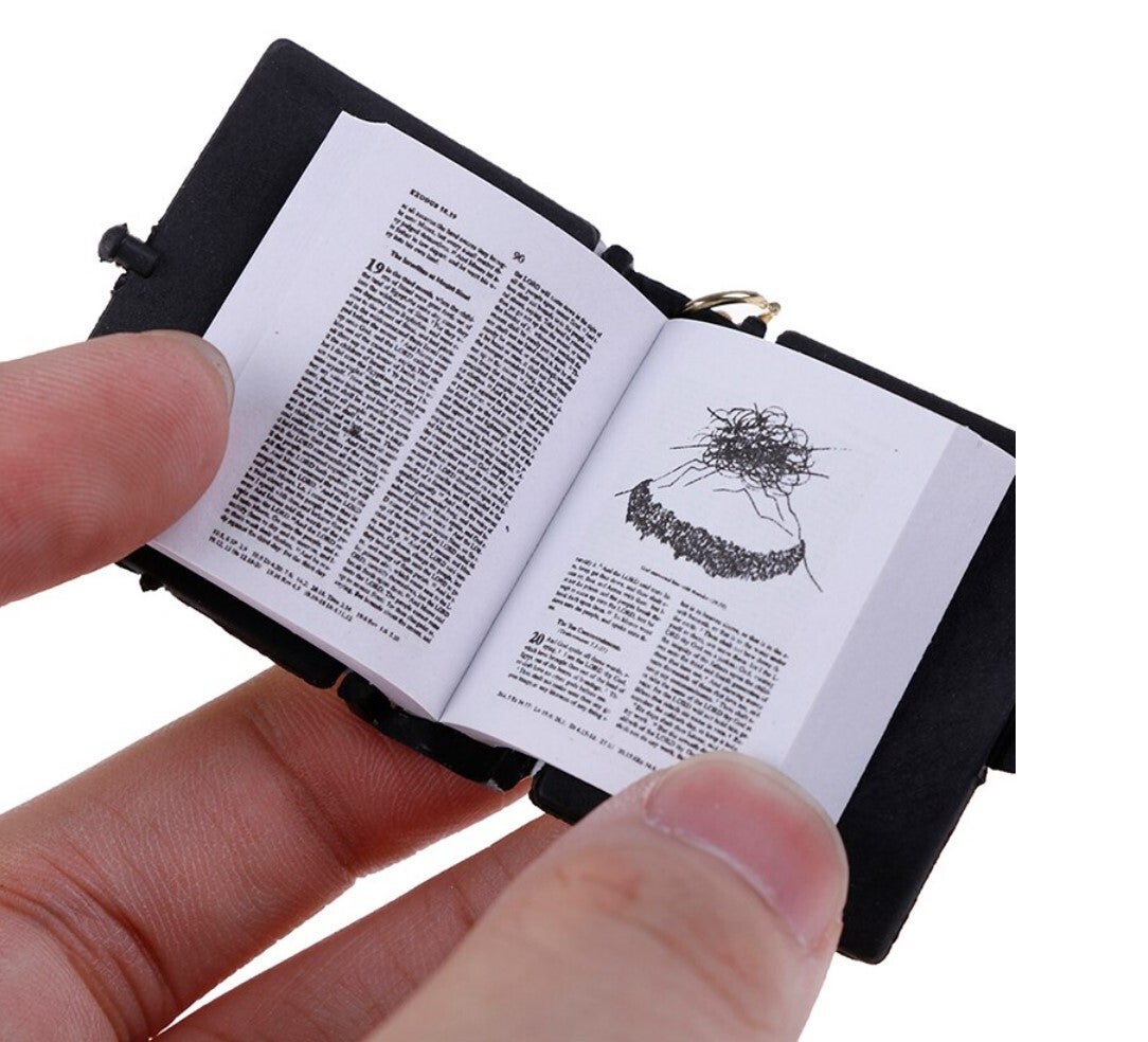 Deze bijbel sleutelhanger is speciaal ontworpen voor het thema Christendom. Er wordt een sleutelring mee geleverd waaraan de hanger is bevestigd.