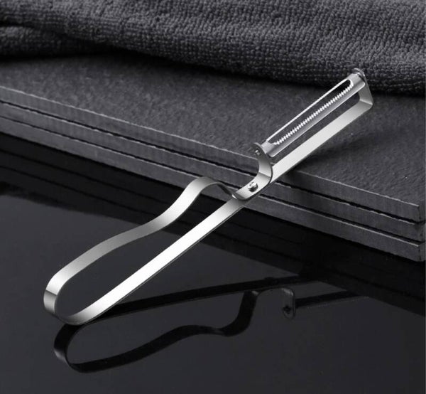 Deze dunschiller is ontworpen voor zowel links- als rechtshandig gebruik. Hij is ideaal voor het schillen of snijden van diverse groenten en fruit zoals aardappelen, appels, wortel, asperge en komkommer. Lichtgewicht en duurzaam model, gemaakt van roestvrij staal. Onmisbaar in iedere keuken! Lengte 15 cm.