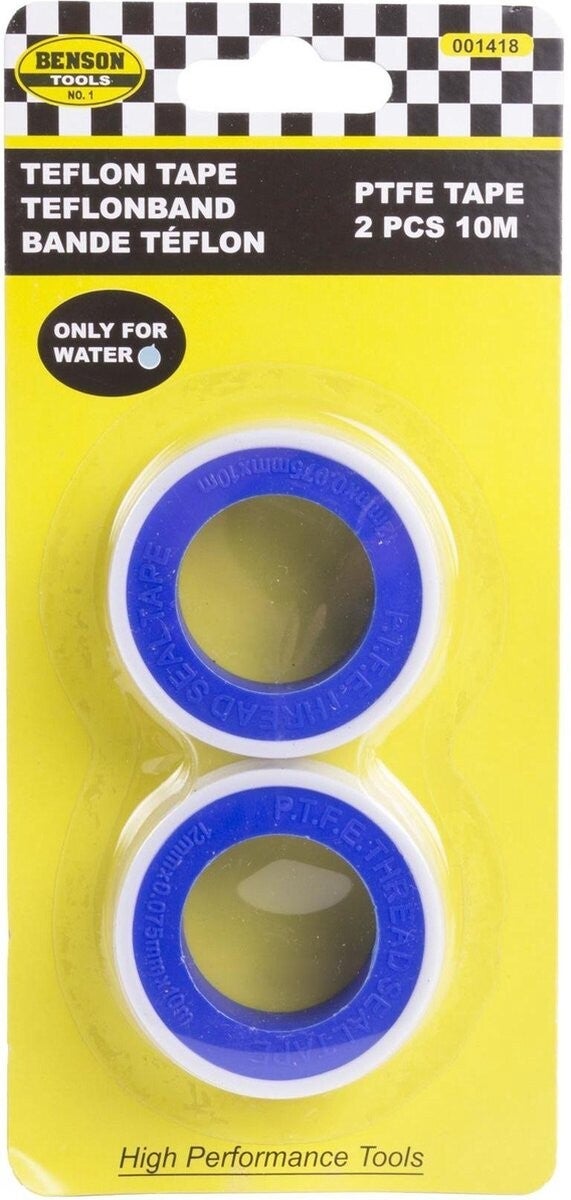 2 Stuks teflontape van 10 Meter, voor het afdichten van waterleidingen en gasleidingen.